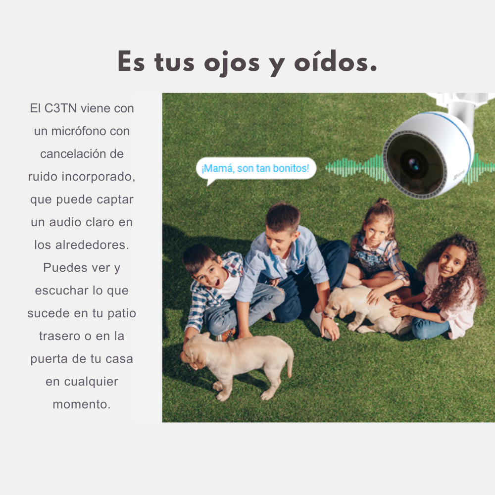 • Micrófono integrado que permite escuchar lo que sucede alrededor de la cámara.