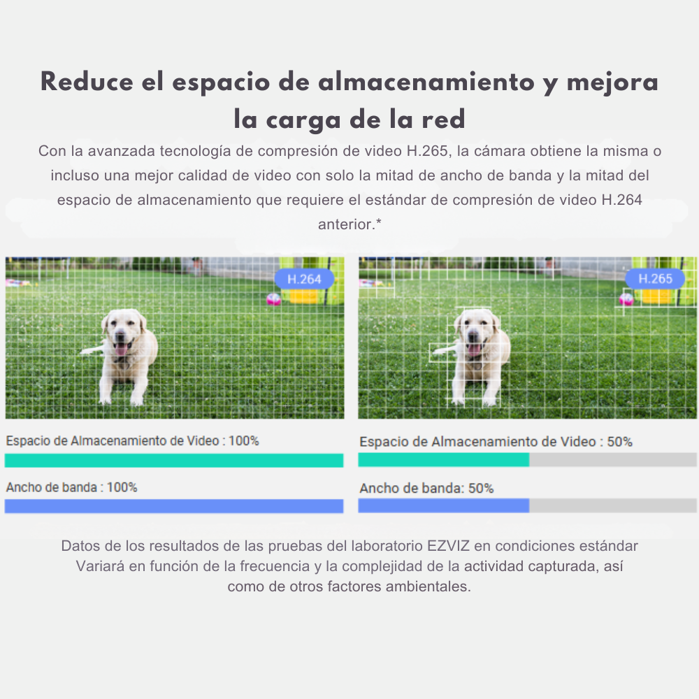 • Tecnología de compresión H.265 que ahorra espacio en almacenamiento sin perder calidad.