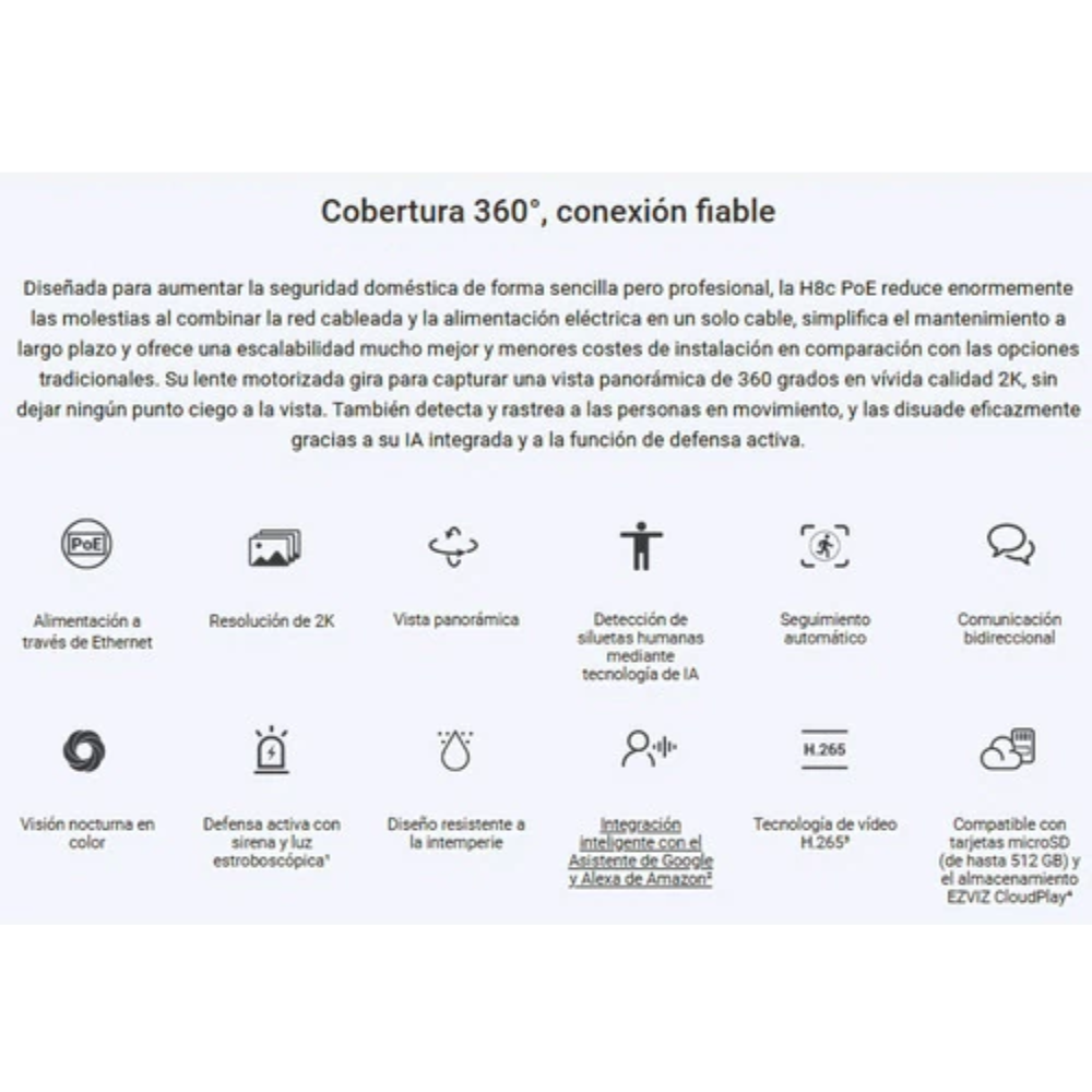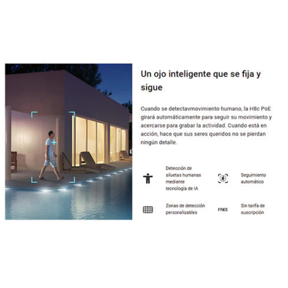 • Detección inteligente de movimiento con alertas instantáneas al celular vía app EZVIZ.