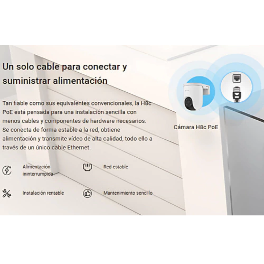• Conectividad: PoE (Power over Ethernet) y red cableada