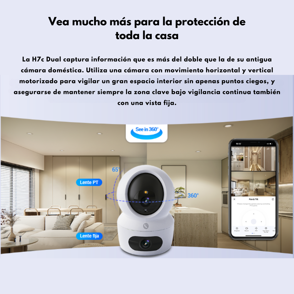 • Ideal para monitorear espacios amplios como entradas, garajes, patios o pasillos con una sola cámara.