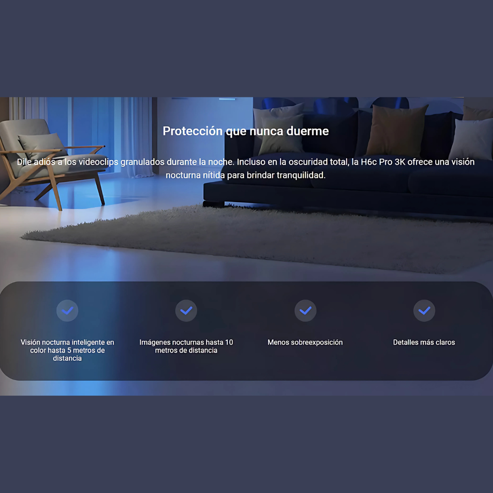 • Control total desde la app EZVIZ, con visualización en vivo, configuración y alertas en tiempo real.