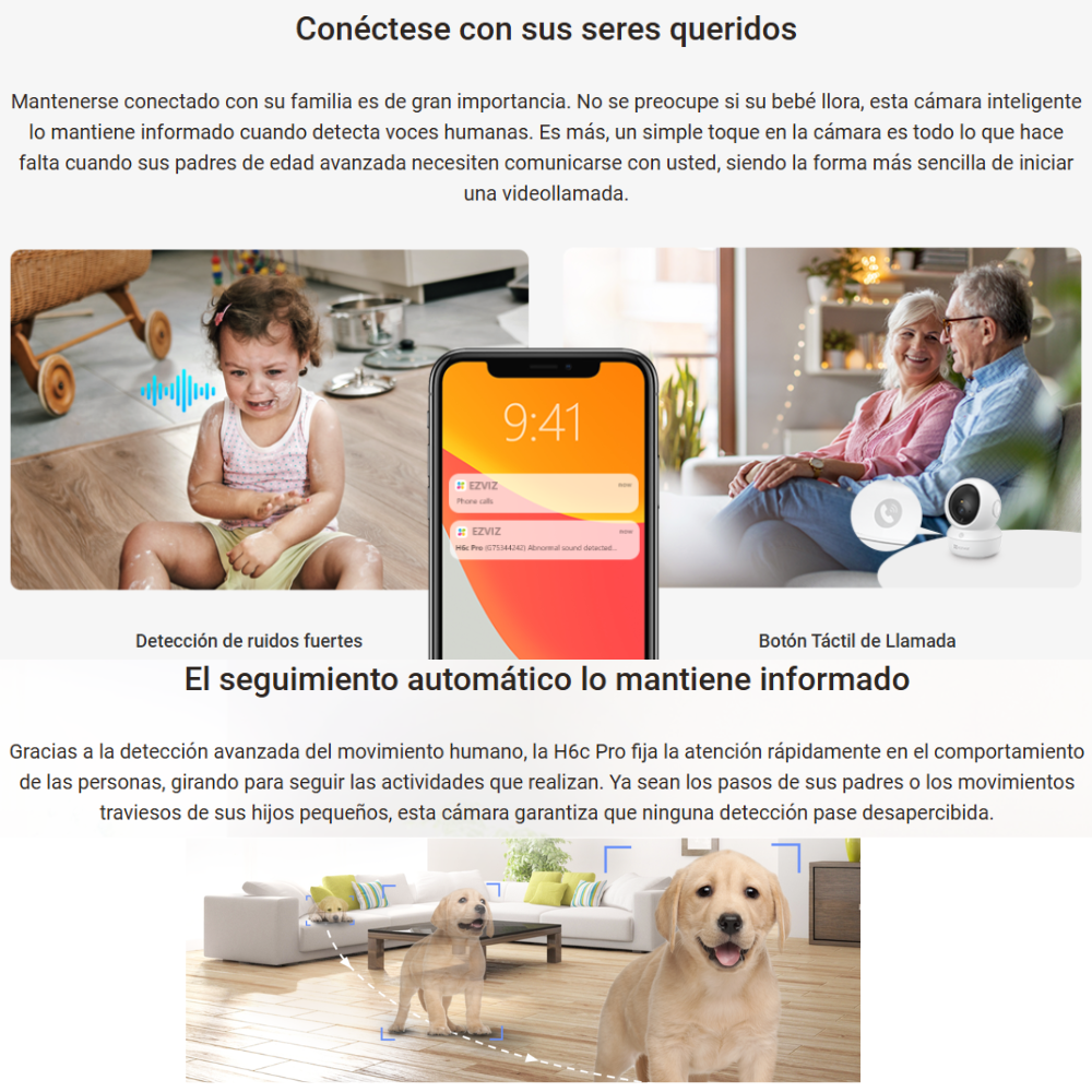 • Función de seguimiento automático que detecta y sigue el movimiento dentro de su campo visual.