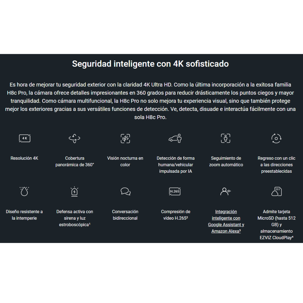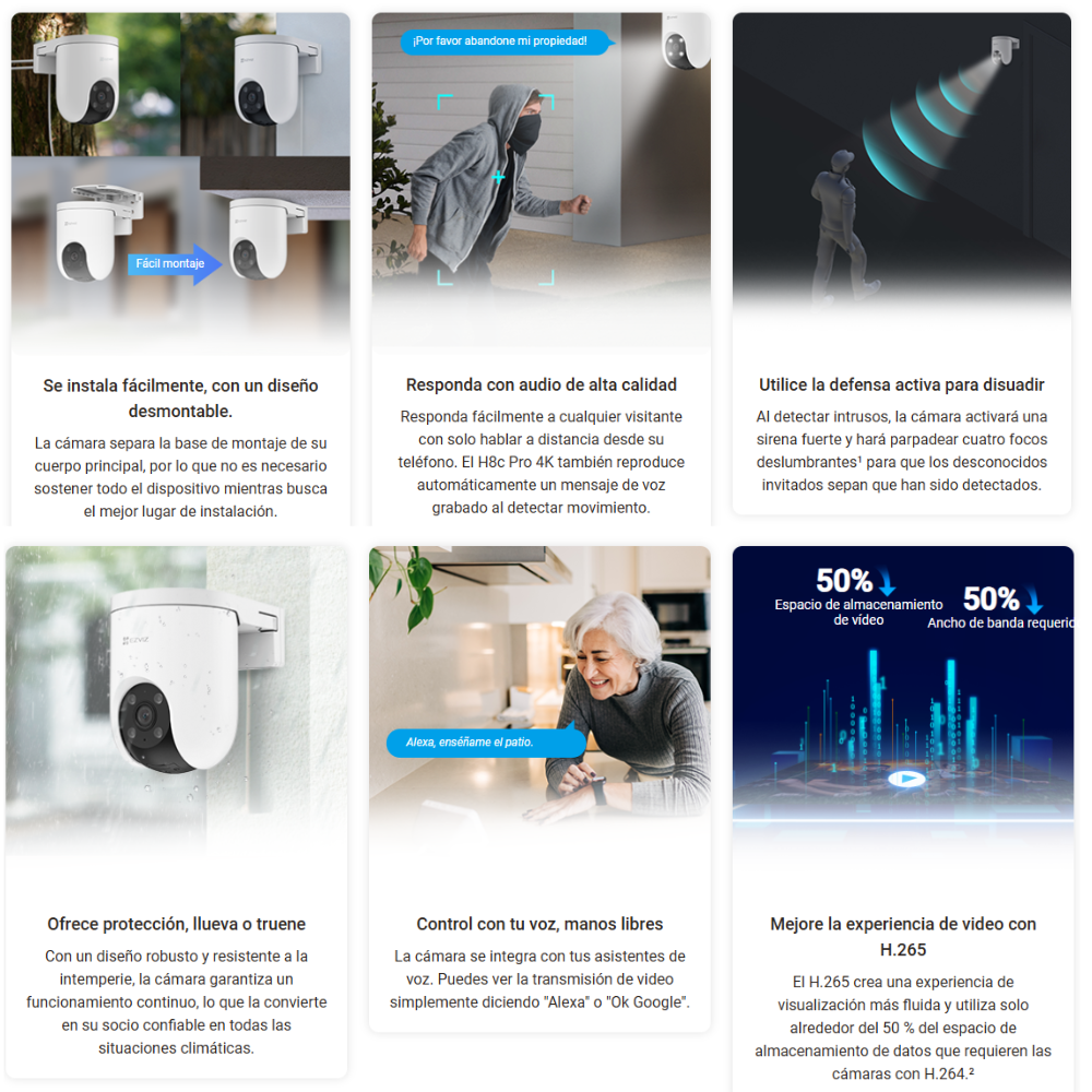 • Compatible con la aplicación EZVIZ para control y monitoreo remoto.