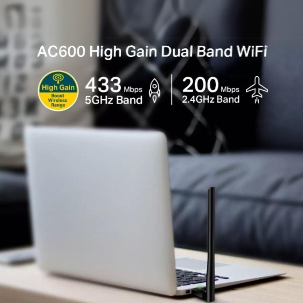 • Wi-Fi AC600 de Banda Dual: Hasta 433 Mbps en 5 GHz y 150 Mbps en 2.4 GHz para conexiones rápidas y estables.