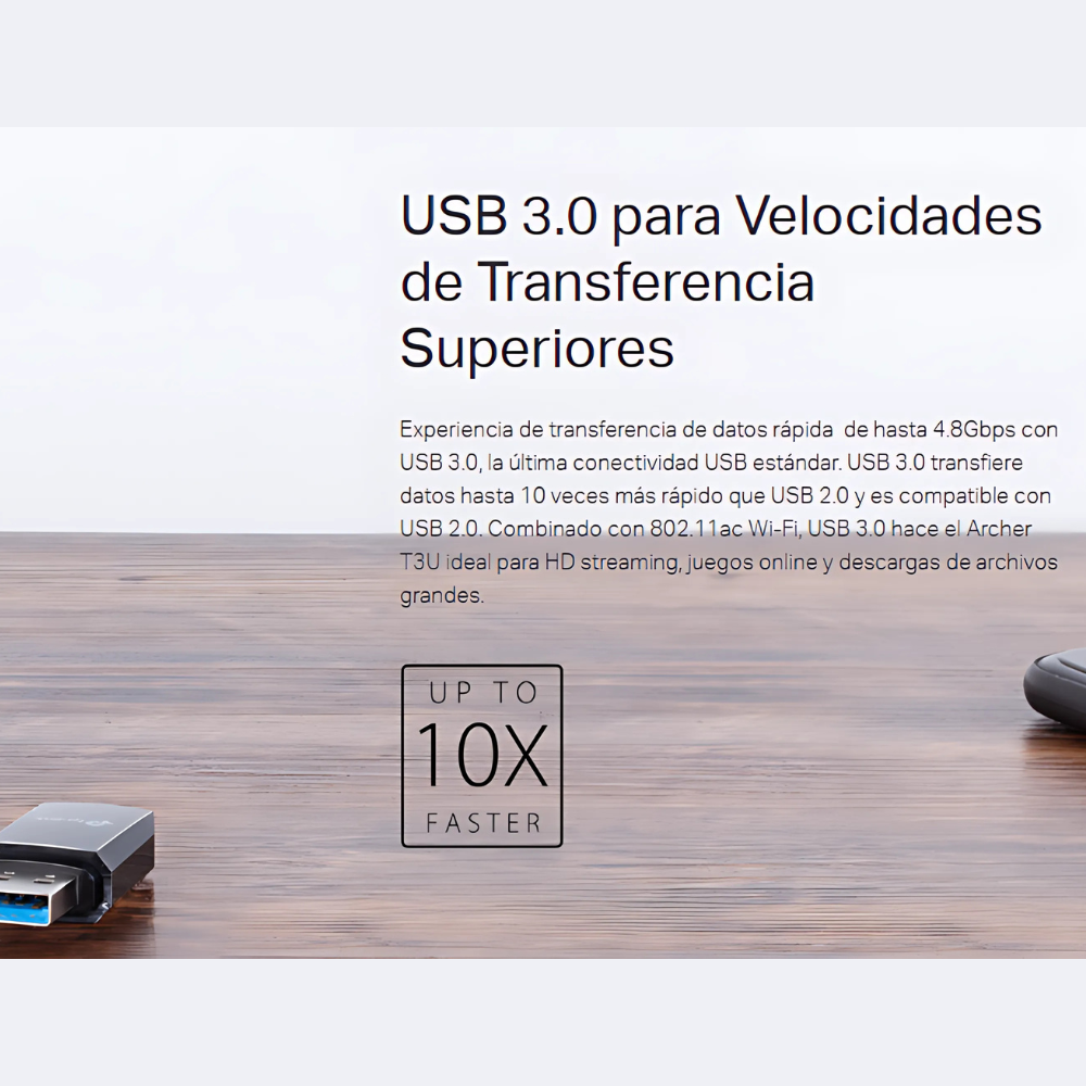 • Interfaz USB 3.0: Transferencias más rápidas y mejor rendimiento inalámbrico.