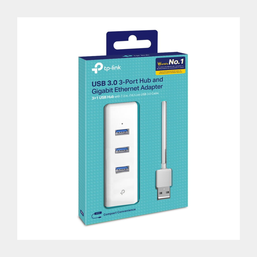 • Adaptador 2 en 1 compacto: Combina un puerto Ethernet Gigabit con un hub USB 3.0 de tres puertos para expandir conectividad.