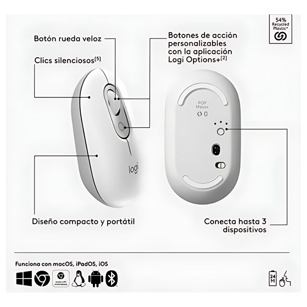 • Conectividad dual mediante Bluetooth y Logi Bolt para mayor compatibilidad con diferentes dispositivos