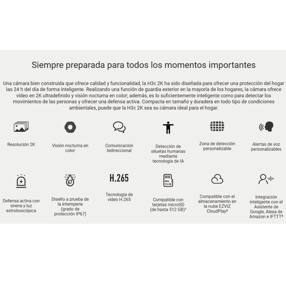 • Resolución 2K de 3 megapíxeles que ofrece imágenes más nítidas y definidas que una cámara Full HD.