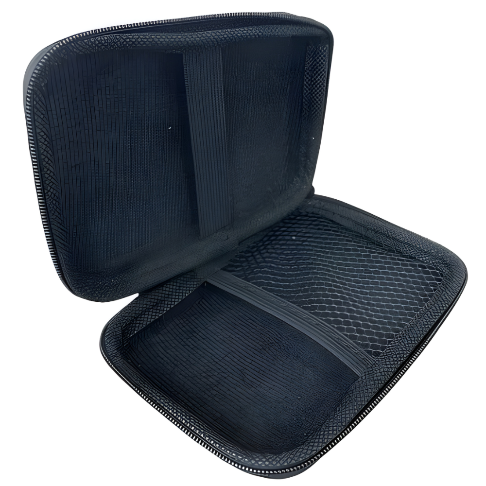 Estructura Semirrígida: Fabricado generalmente en material EVA (Etilvinilacetato), un plástico resistente que absorbe impactos y evita que el disco sufra daños por caídas o presión dentro de una mochila.