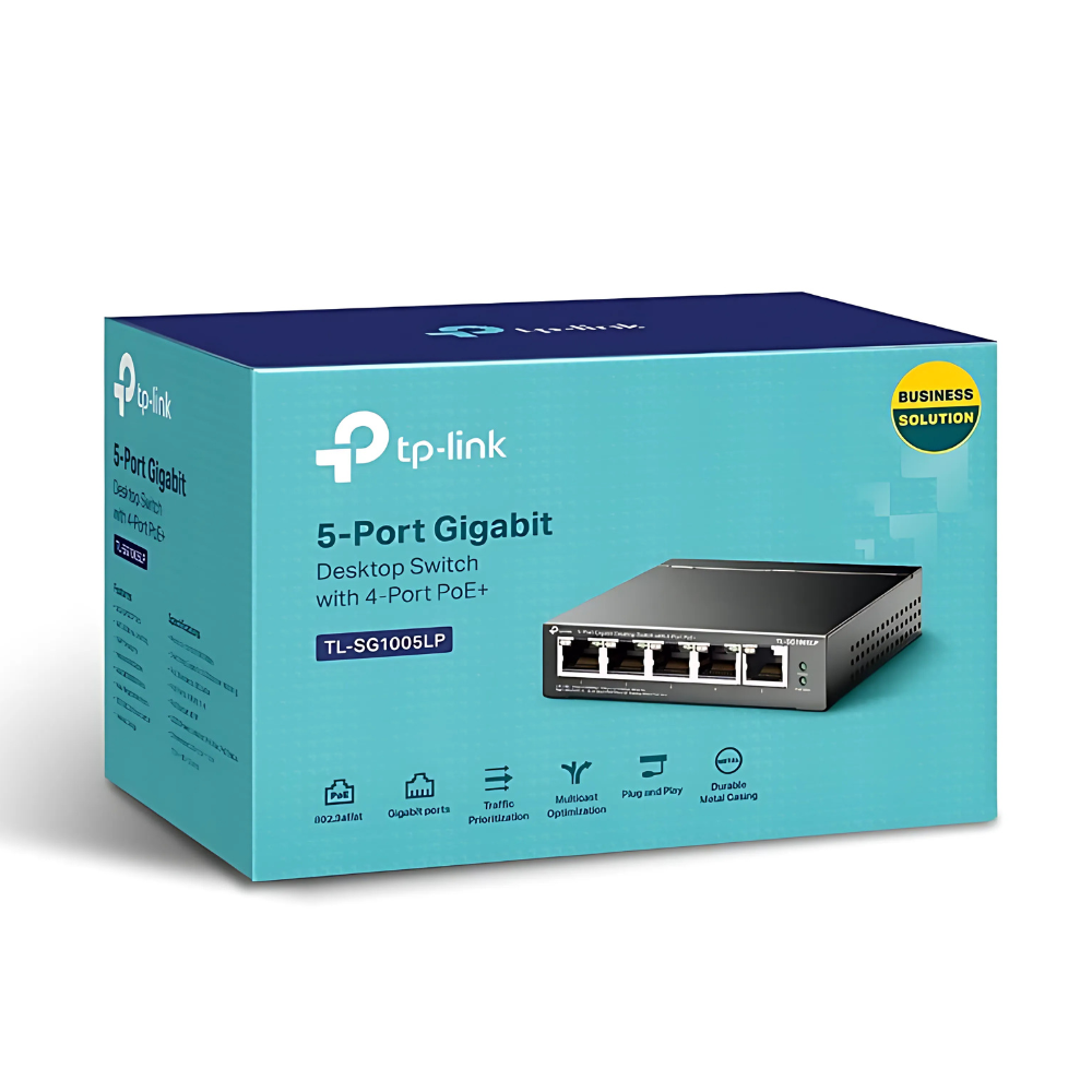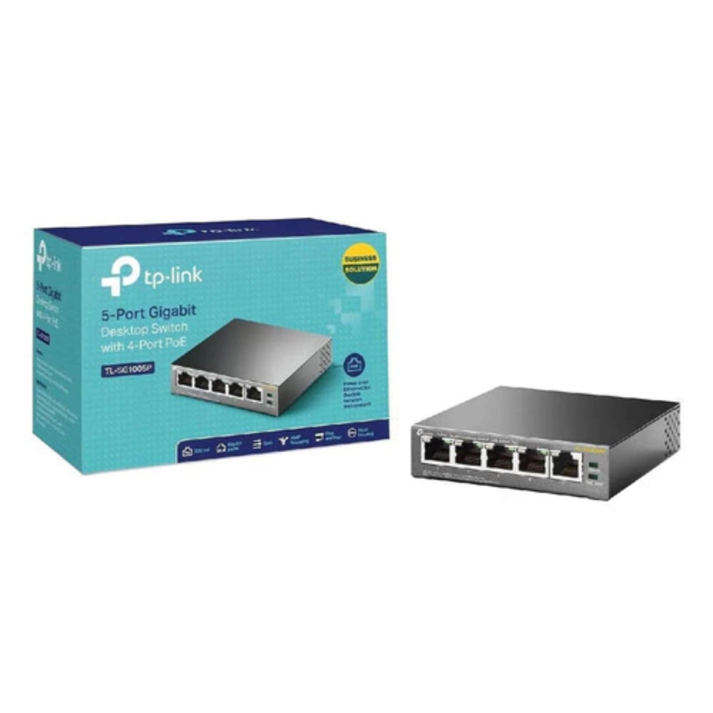 • Puertos totales: 5 (1 estándar + 4 PoE)