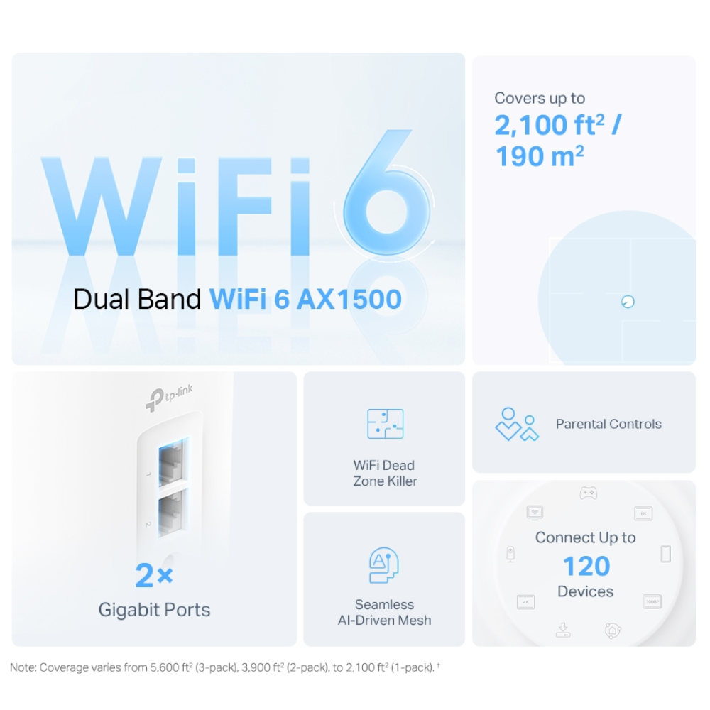 • Sistema Mesh Wi-Fi 6 de alto rendimiento: Proporciona conexión estable, rápida y sin interrupciones en todo tu hogar.