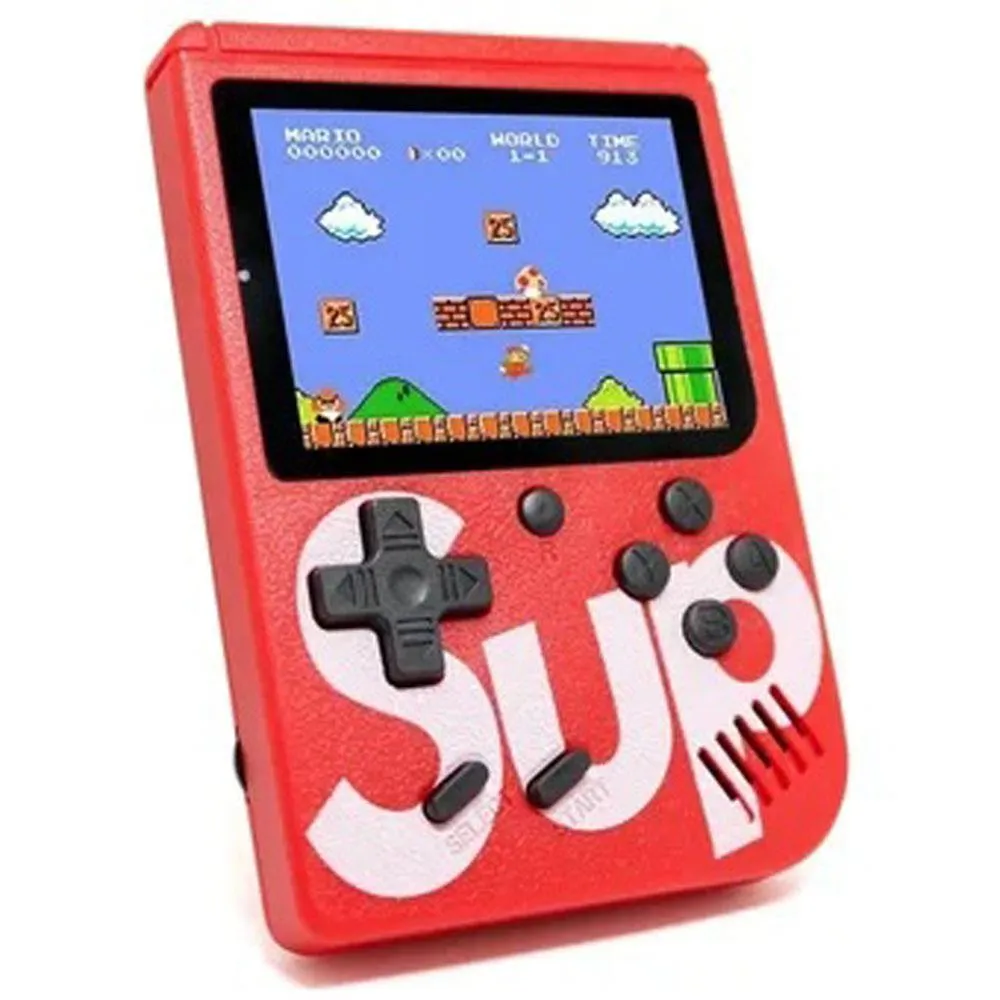 • Consola portátil con diseño retro que incluye cientos de juegos clásicos integrados.