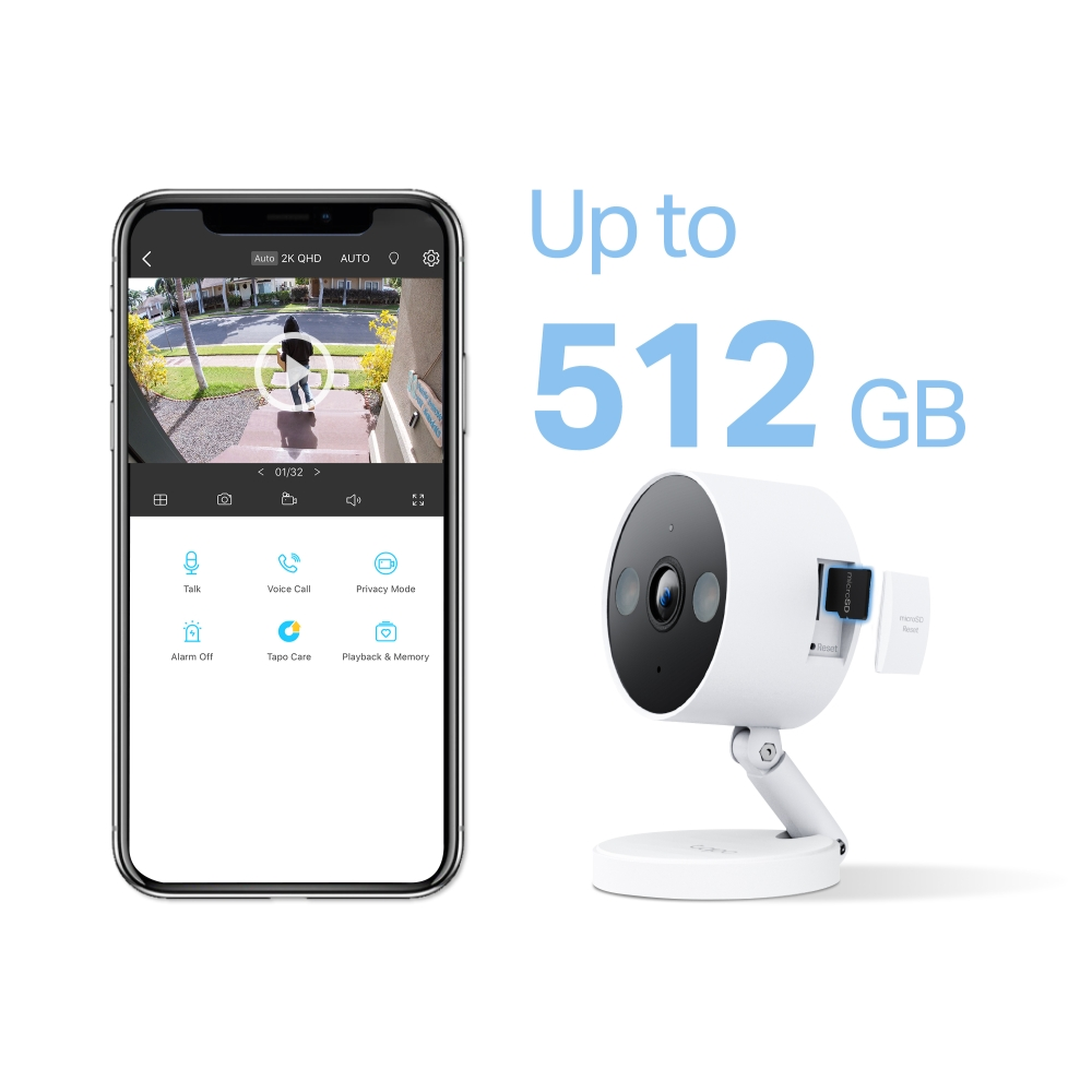• Grabación local sin suscripciones: Guarda tus videos directamente en una tarjeta microSD de hasta 512 GB.