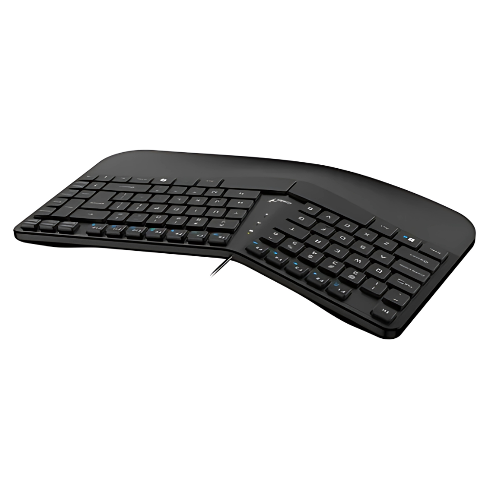 • Distribución de teclas dividida para una postura natural de las manos