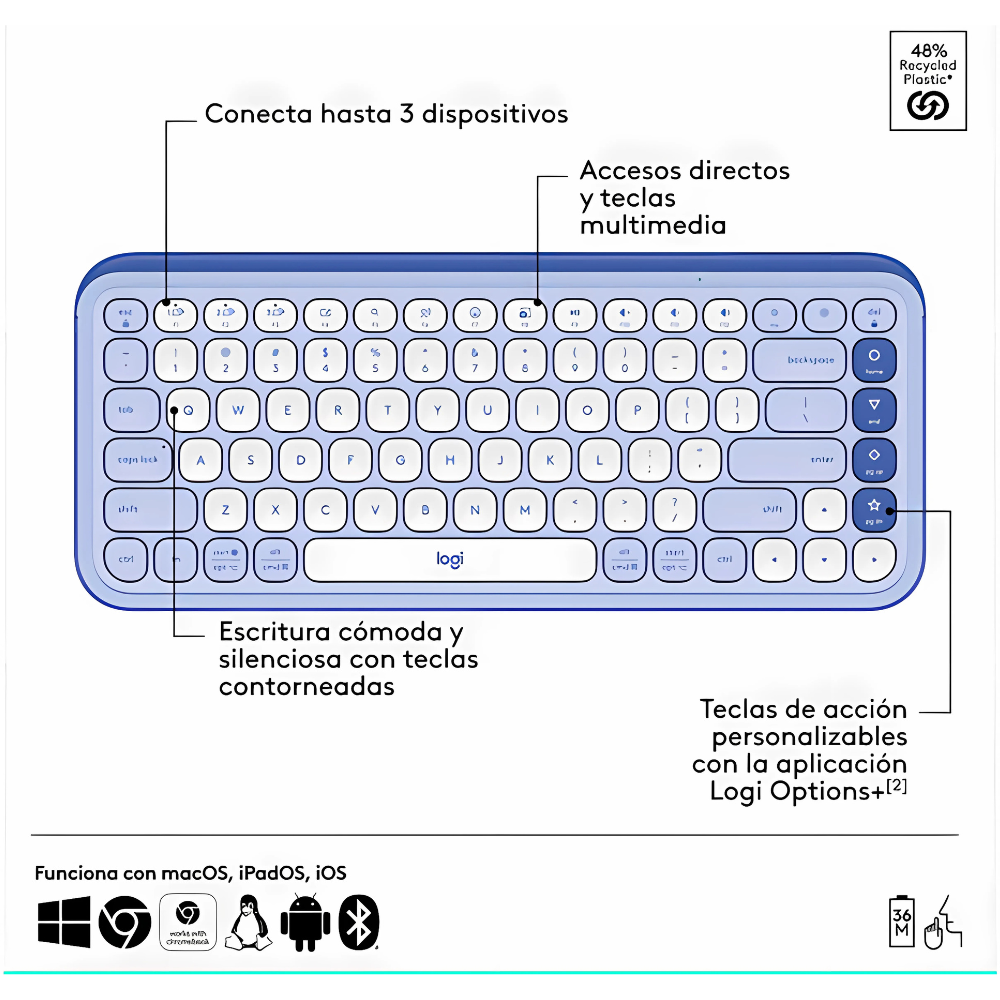 • Teclado compacto con teclas silenciosas y cómodas para largas sesiones