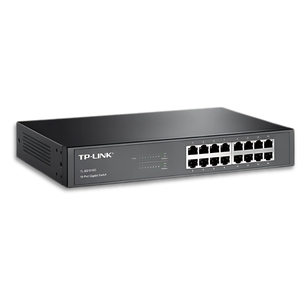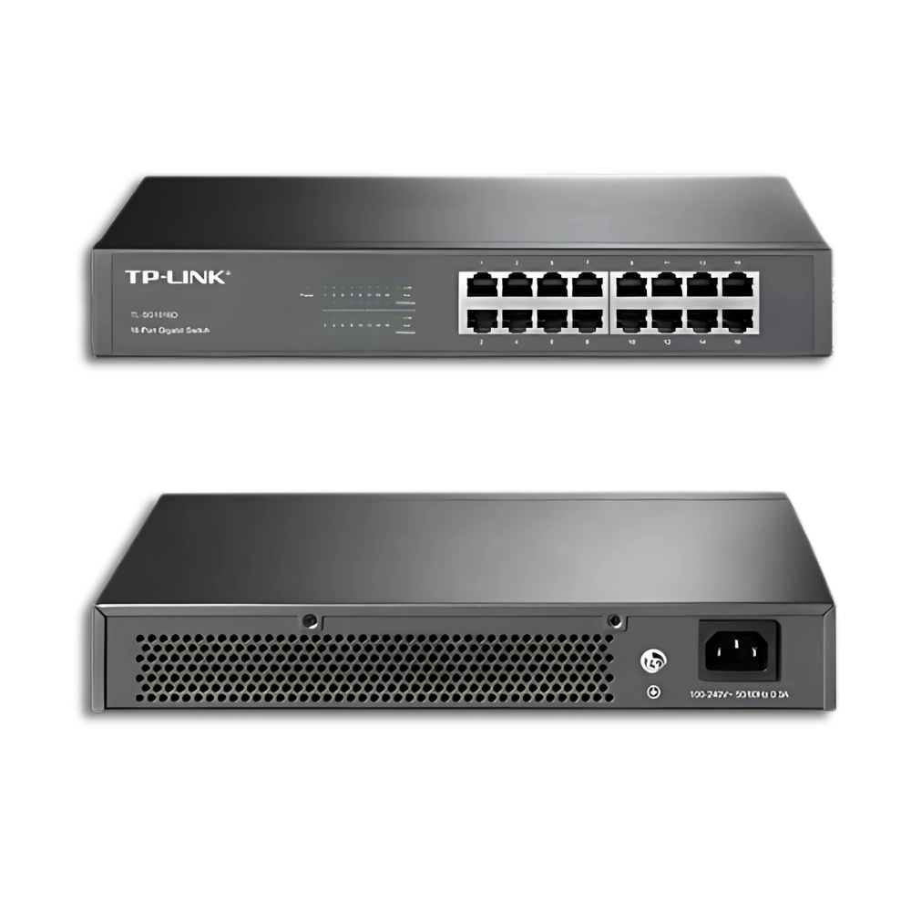 • 16 puertos Gigabit Ethernet: Conectividad ultrarrápida para múltiples dispositivos, ideal para entornos empresariales.