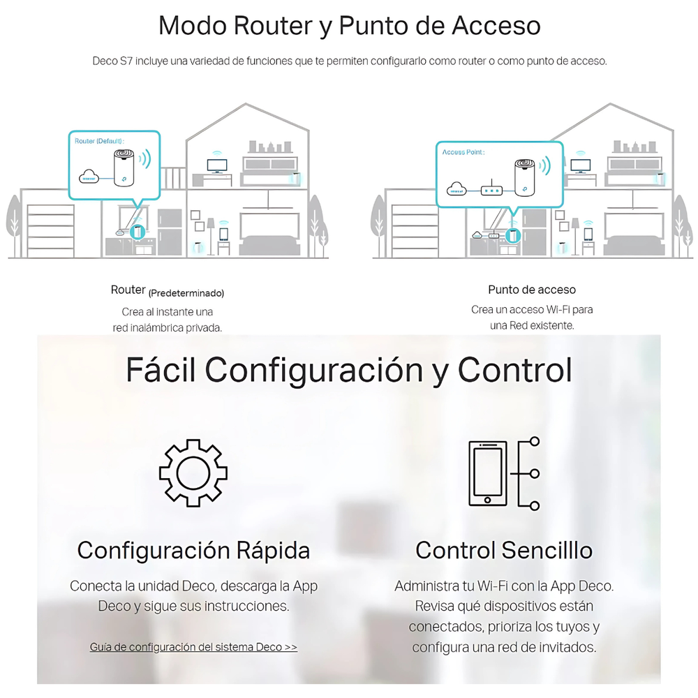 • Wi-Fi Mesh de alto rendimiento: Amplía la cobertura de tu red eliminando zonas sin señal y garantizando estabilidad en toda la casa.