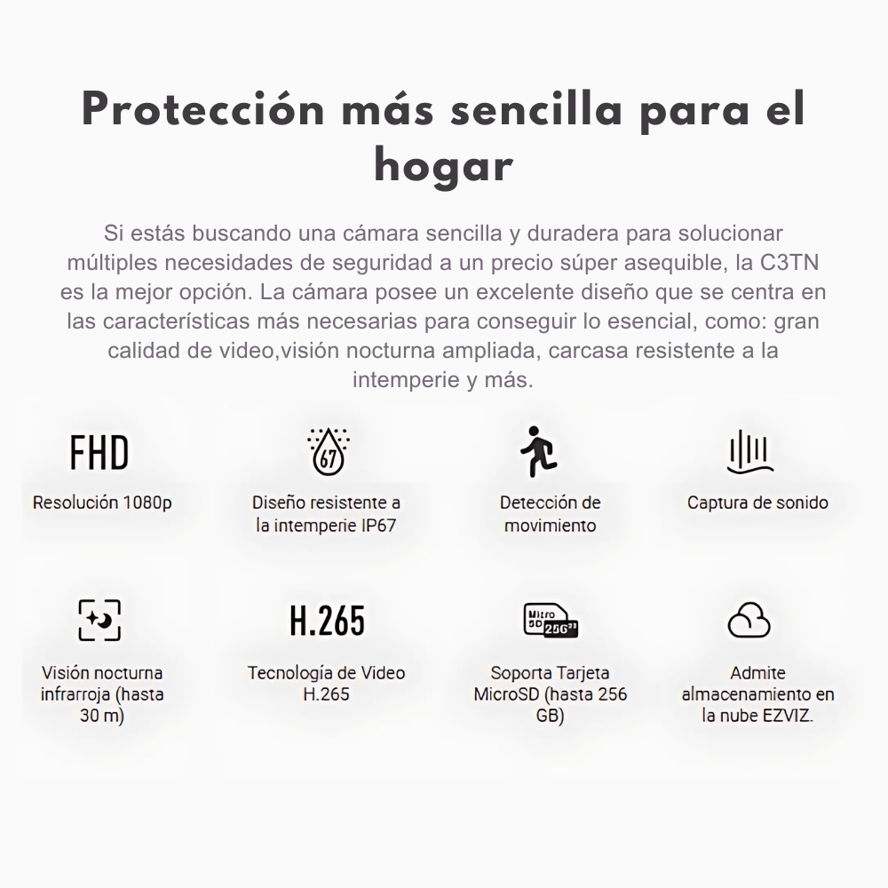 • Compatible con app EZVIZ (iOS y Android)