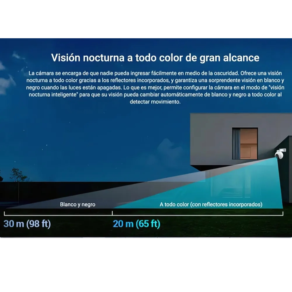 • Visión nocturna avanzada con infrarrojos y luz blanca, permite ver a color en completa oscuridad.