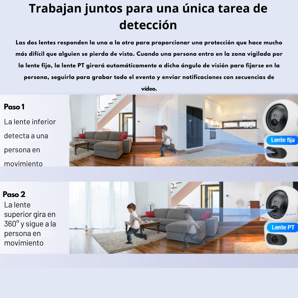 • Ideal para monitorear espacios amplios como entradas, garajes, patios o pasillos con una sola cámara.