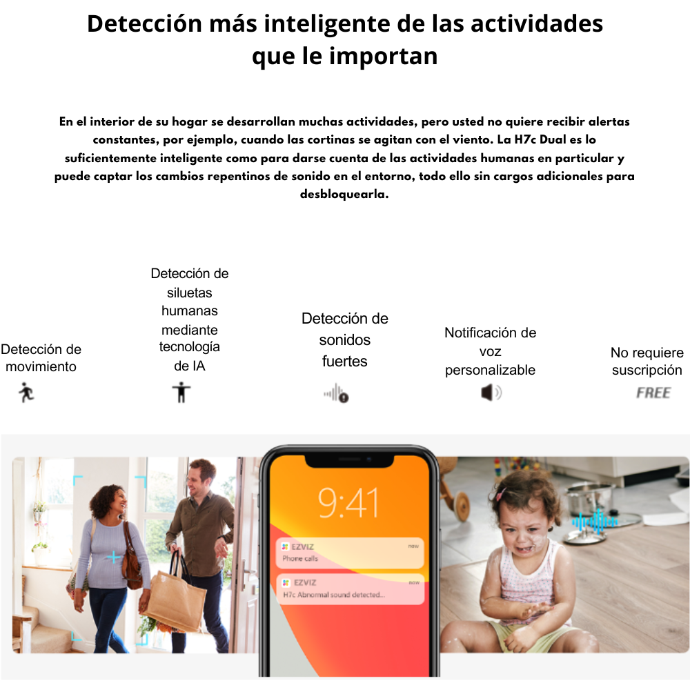 • Audio bidireccional para escuchar y comunicarte directamente desde la app EZVIZ.