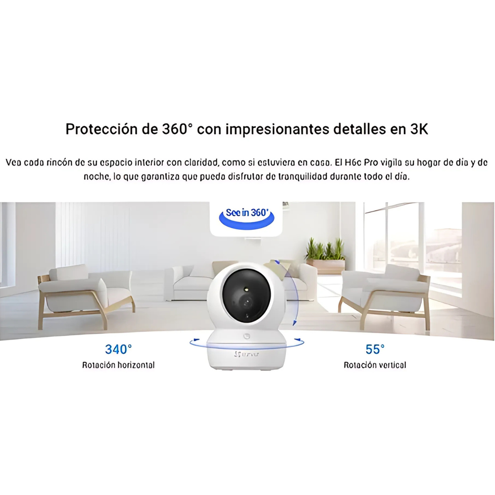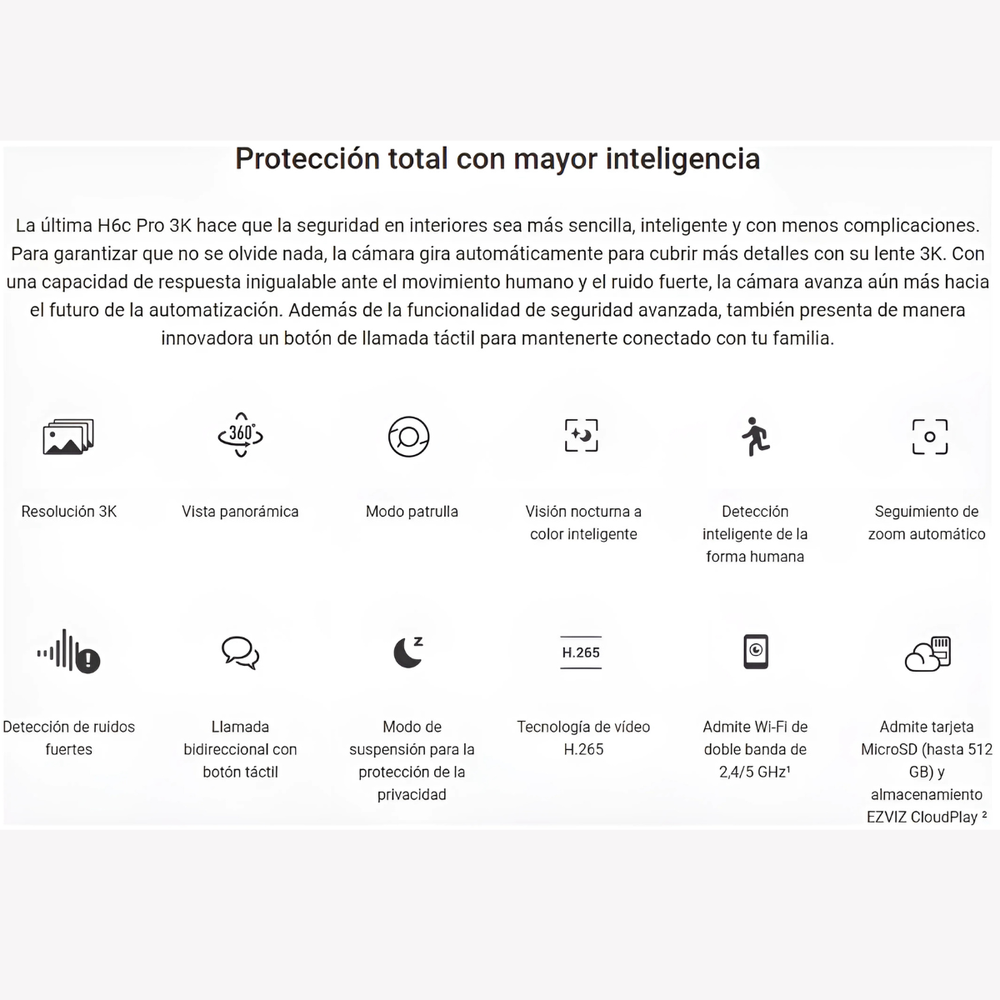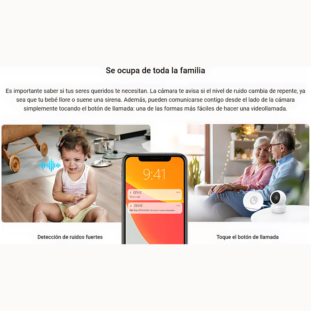 • Control total desde la app EZVIZ, con visualización en vivo, configuración y alertas en tiempo real.