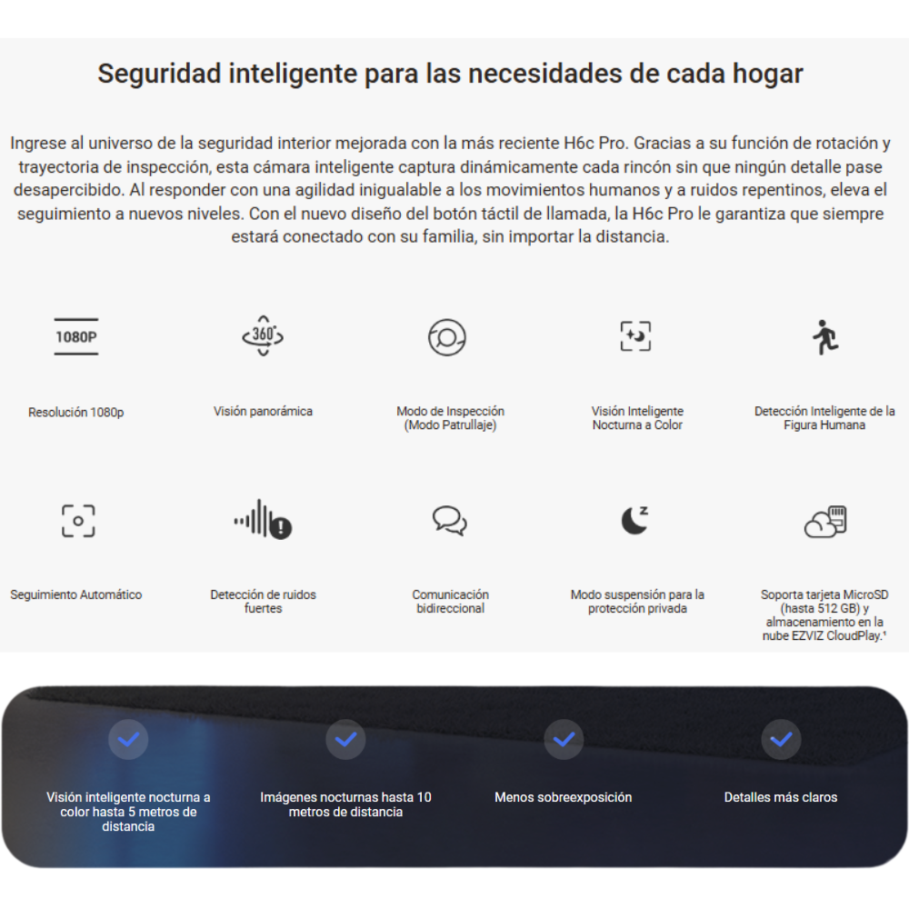 • Control remoto desde la app EZVIZ (iOS y Android)