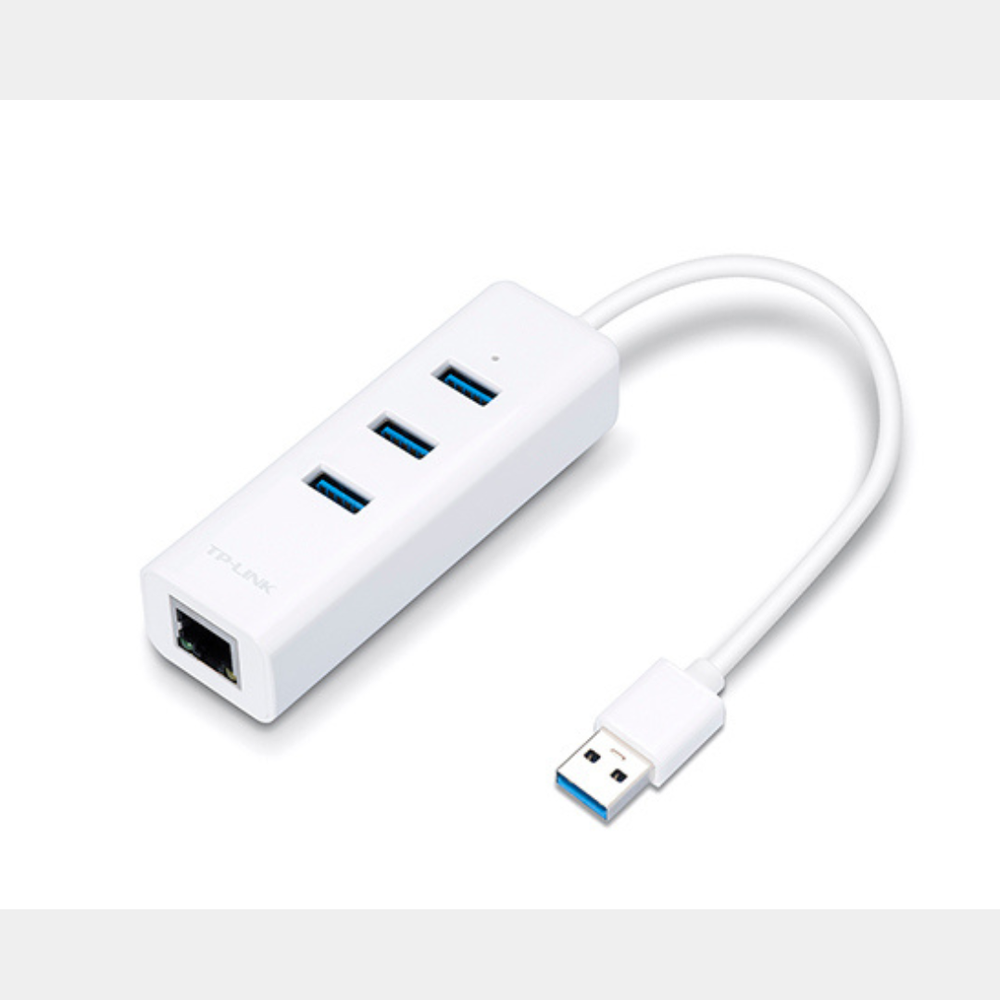• Adaptador 2 en 1 compacto: Combina un puerto Ethernet Gigabit con un hub USB 3.0 de tres puertos para expandir conectividad.