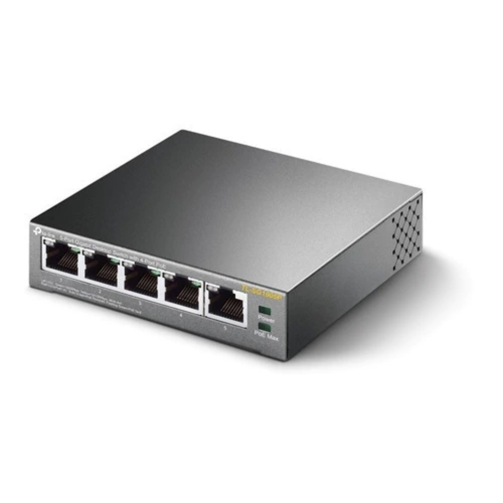 • Puertos totales: 5 (1 estándar + 4 PoE)