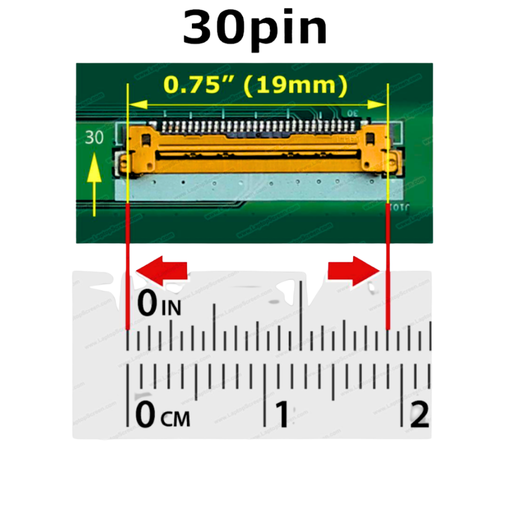 Aunque sea de 30 pines, asegúrate de que el conector en la pantalla sea pequeño y plano (aproximadamente 2 cm). Es el estándar eDP moderno.