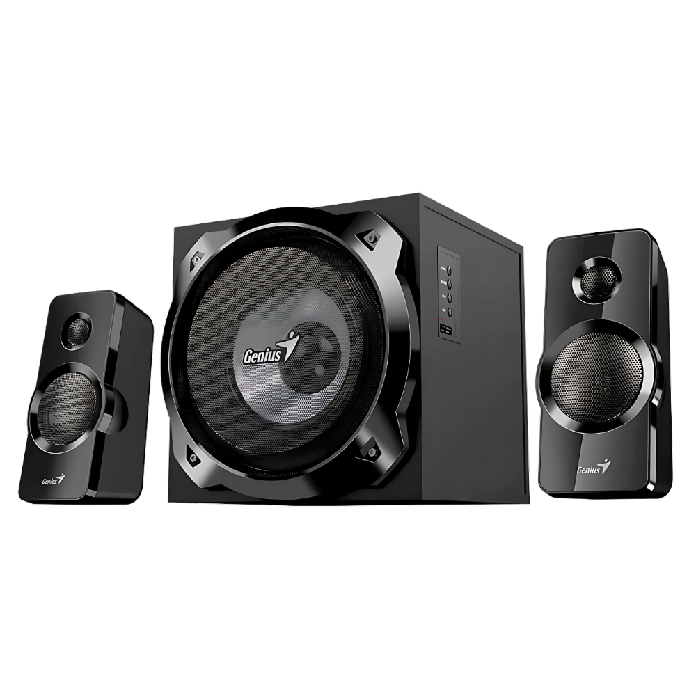 • Sistema de sonido 2.1 con subwoofer que ofrece bajos potentes y claros