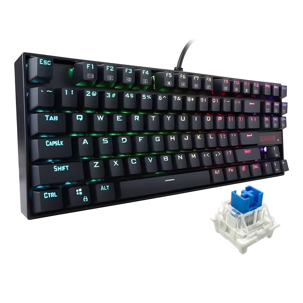 • Switches tipo azul que ofrecen clic audible y sensación táctil clara para juegos o escritura.