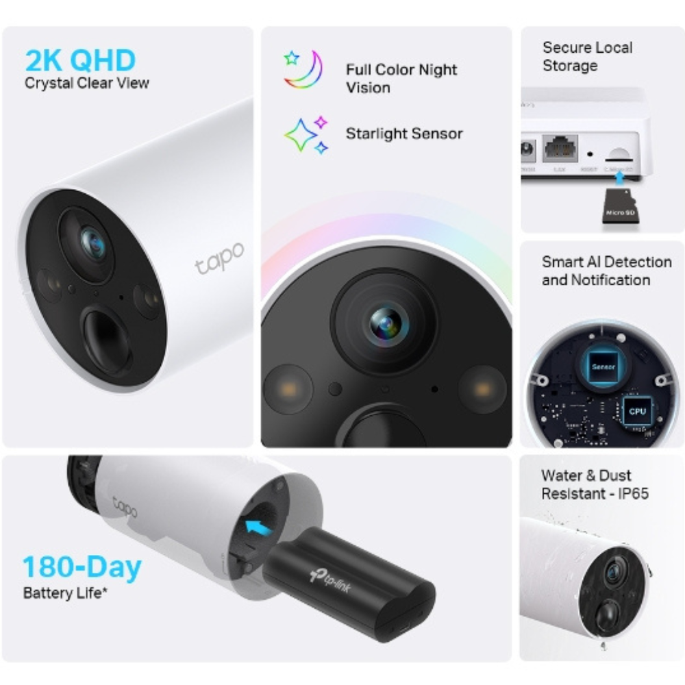 • Almacenamiento versátil: Guarda grabaciones en microSD o en la nube con Tapo Care.