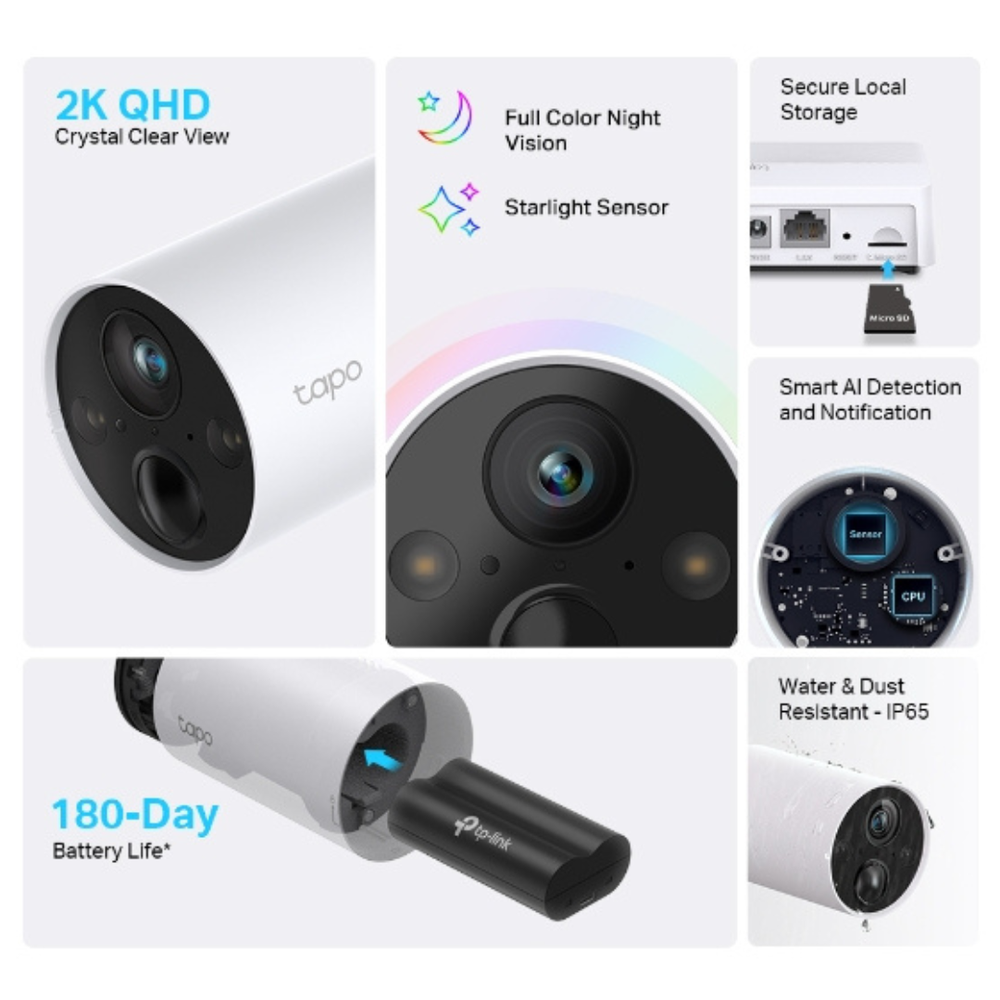 • Almacenamiento en tarjeta microSD (hasta 256 GB) o nube Tapo Care