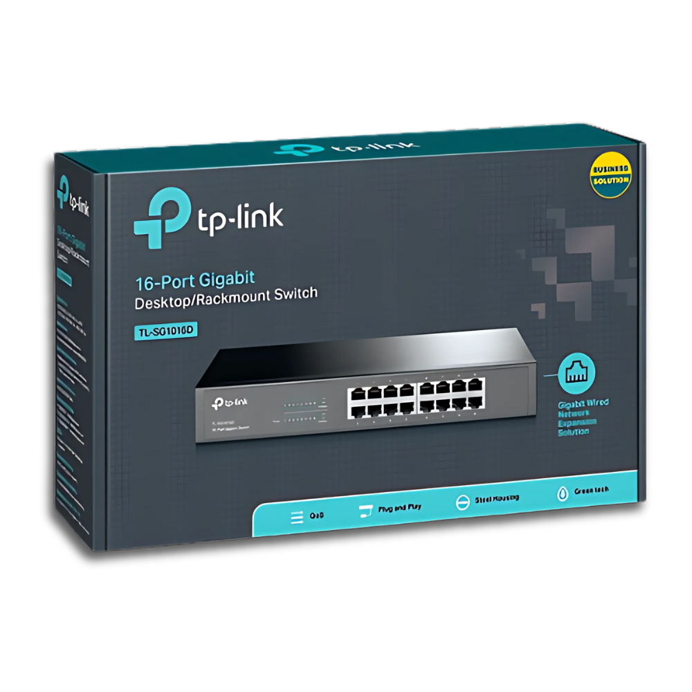 • 16 puertos Gigabit Ethernet: Conectividad ultrarrápida para múltiples dispositivos, ideal para entornos empresariales.