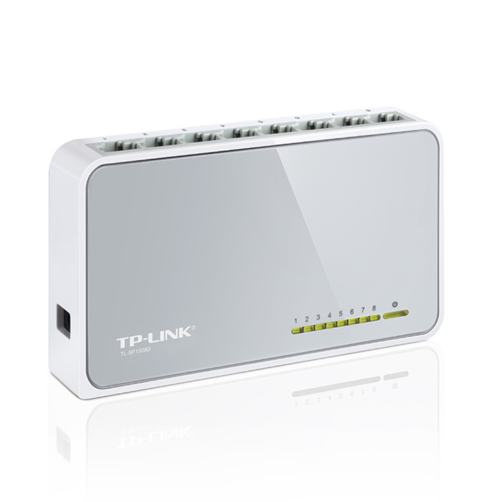 • Puertos: 8 puertos RJ45 10/100 Mbps con Auto-Negociación y Auto MDI/MDIX