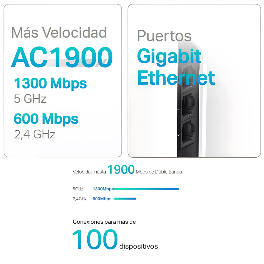 • Velocidad mejorada AC1900: Ideal para streaming 4K, videollamadas y gaming sin interrupciones, con hasta 1900 Mbps combinados.